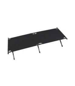 Lit de camp en aluminium noir avec housse de transport.