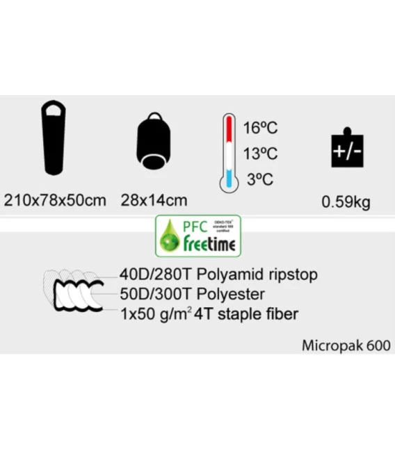 Sac De Couchage Très Léger Freetime Micropak600 16°C/13°C/3°C